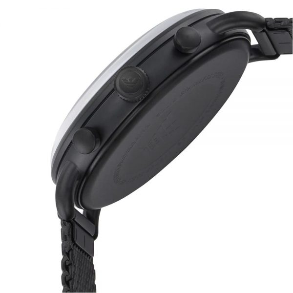 This men's watch by Emporio Armani, model AR11201, is a sleek, elegant timepiece with a stainless steel band and a black dial.