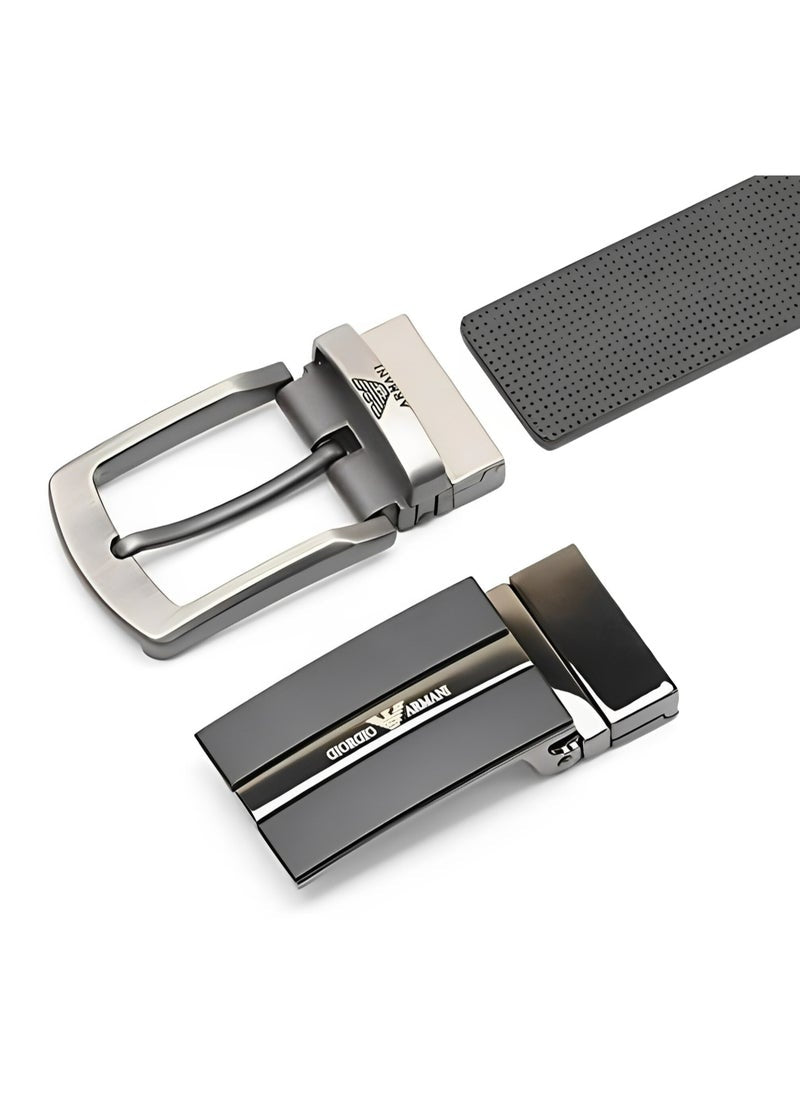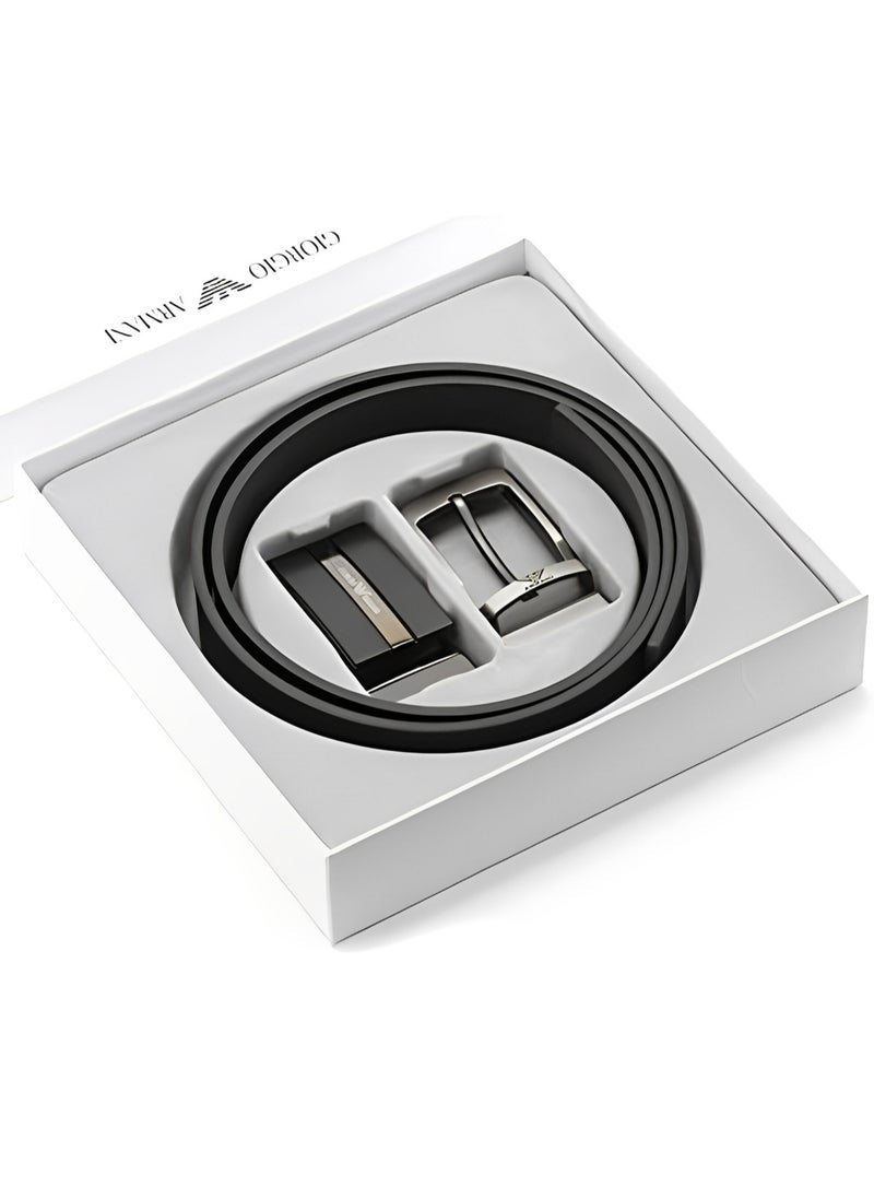 This Giorgio Armani belt set is a testament to craftsmanship and modern design. The reversible belt, featuring both black and brown sides, offers incredible versatility, allowing you to effortlessly switch up your style to suit any occasion. The sleek and minimalist design, combined with the high-quality leather and iconic Giorgio Armani branding, ensures you'll make a statement wherever you go.