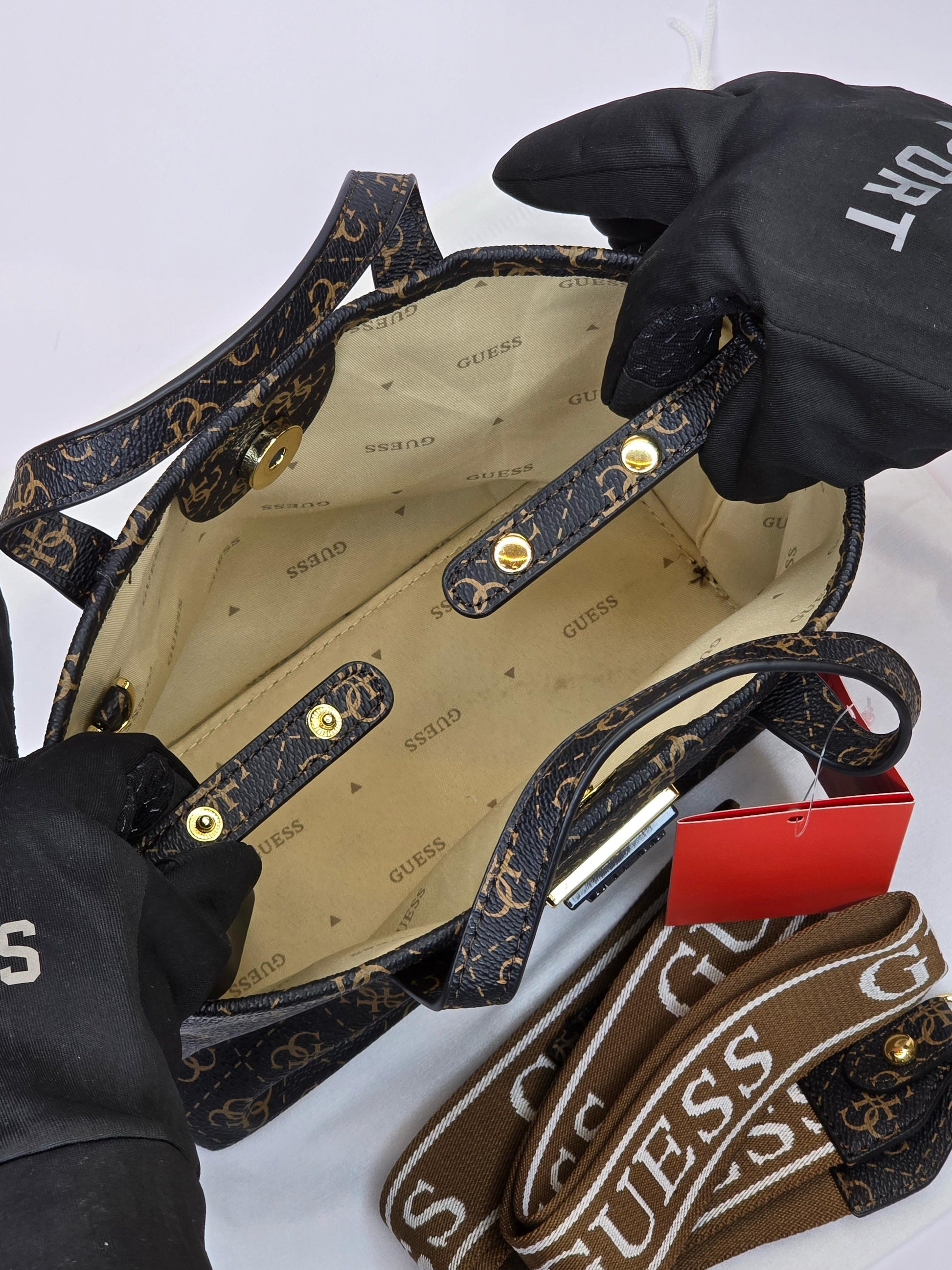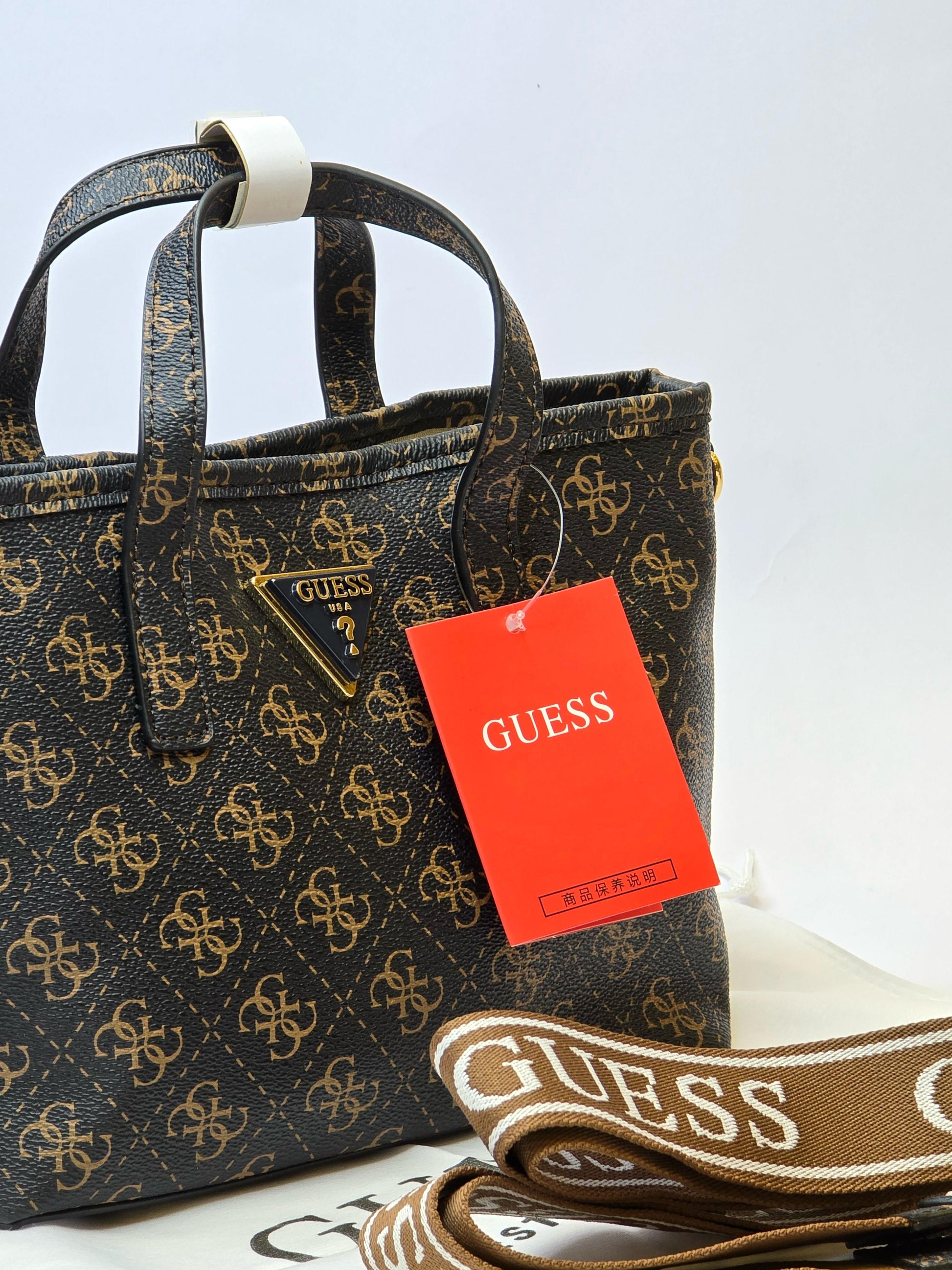 Upgrade your style with the Guess 4-Piece Handbag Set, a perfect blend of elegance and functionality. This designer set includes a spacious tote, a chic shoulder bag, a stylish wallet, and a versatile detachable strap. Crafted from high-quality faux leather with the signature Guess monogram and gold-tone hardware, these bags add a touch of luxury to any outfit.