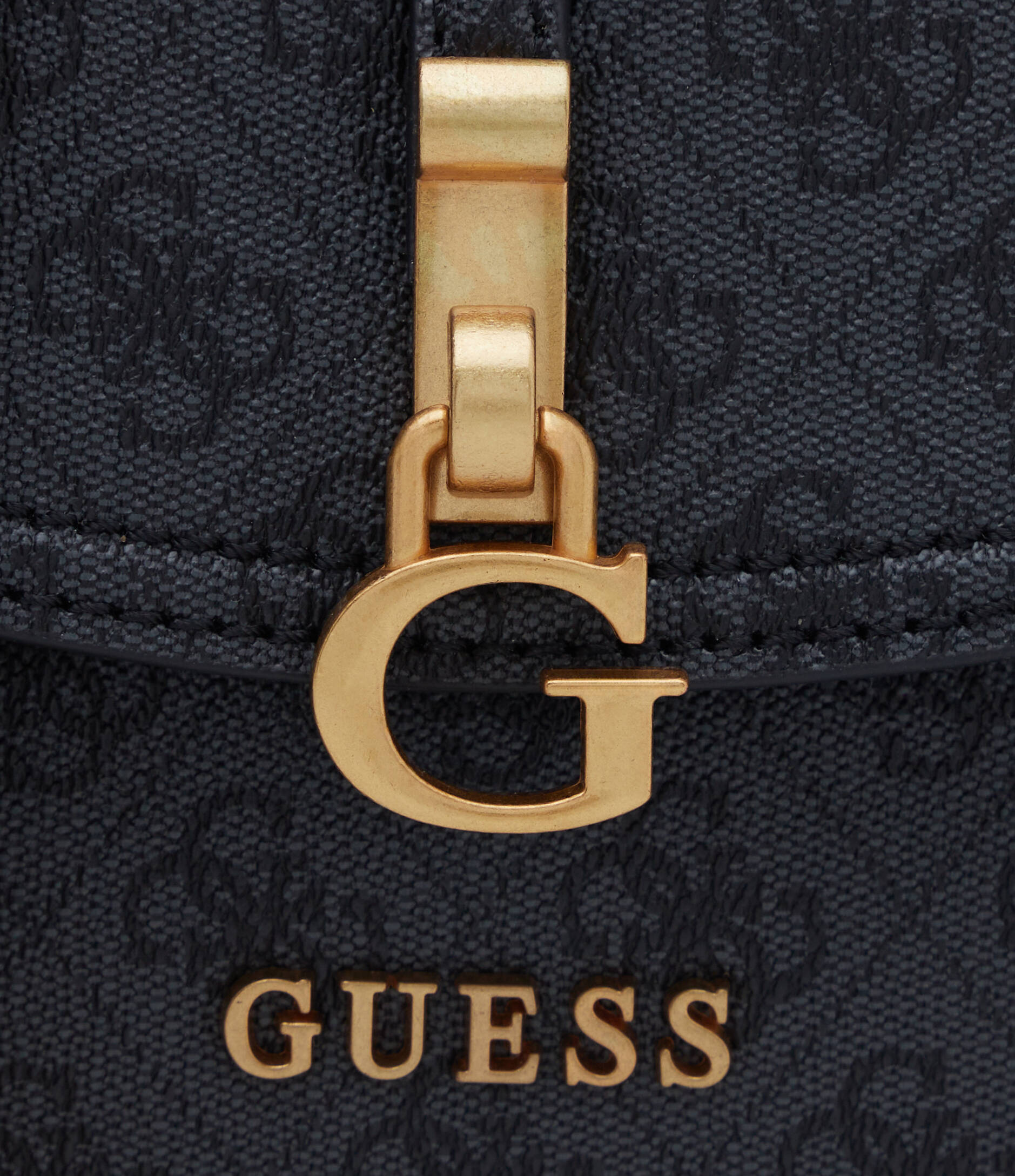 Exterior: GUESS triangle logo and detachable charm