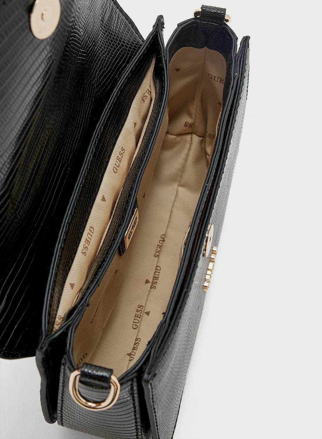 GUESS Orlina Top Handle Crossbody Bag – Black Textured Faux Leather