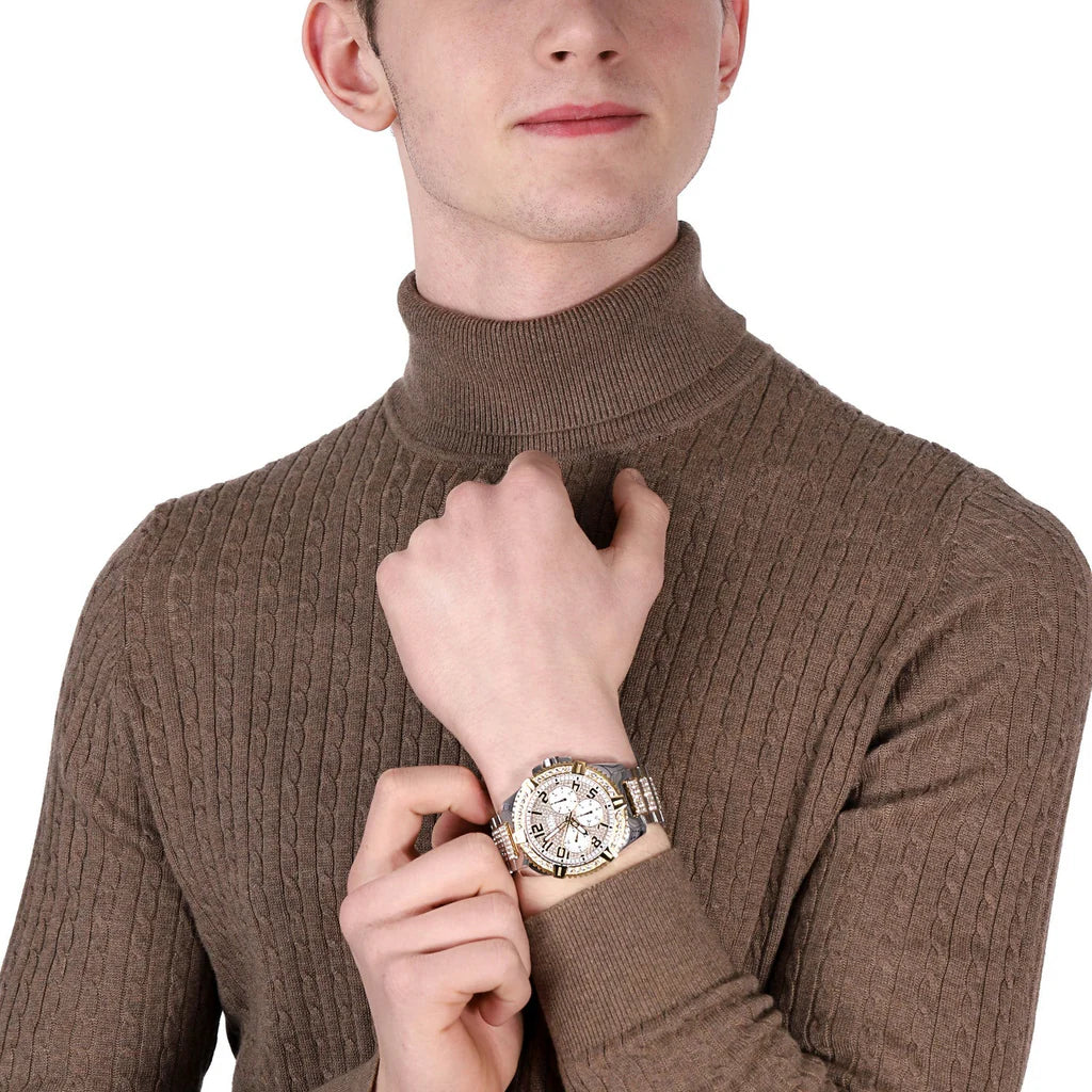 Guess Frontier Chronograph Crystals Silver Dial Two Tone Steel Strap Watch for Men - W0799G4