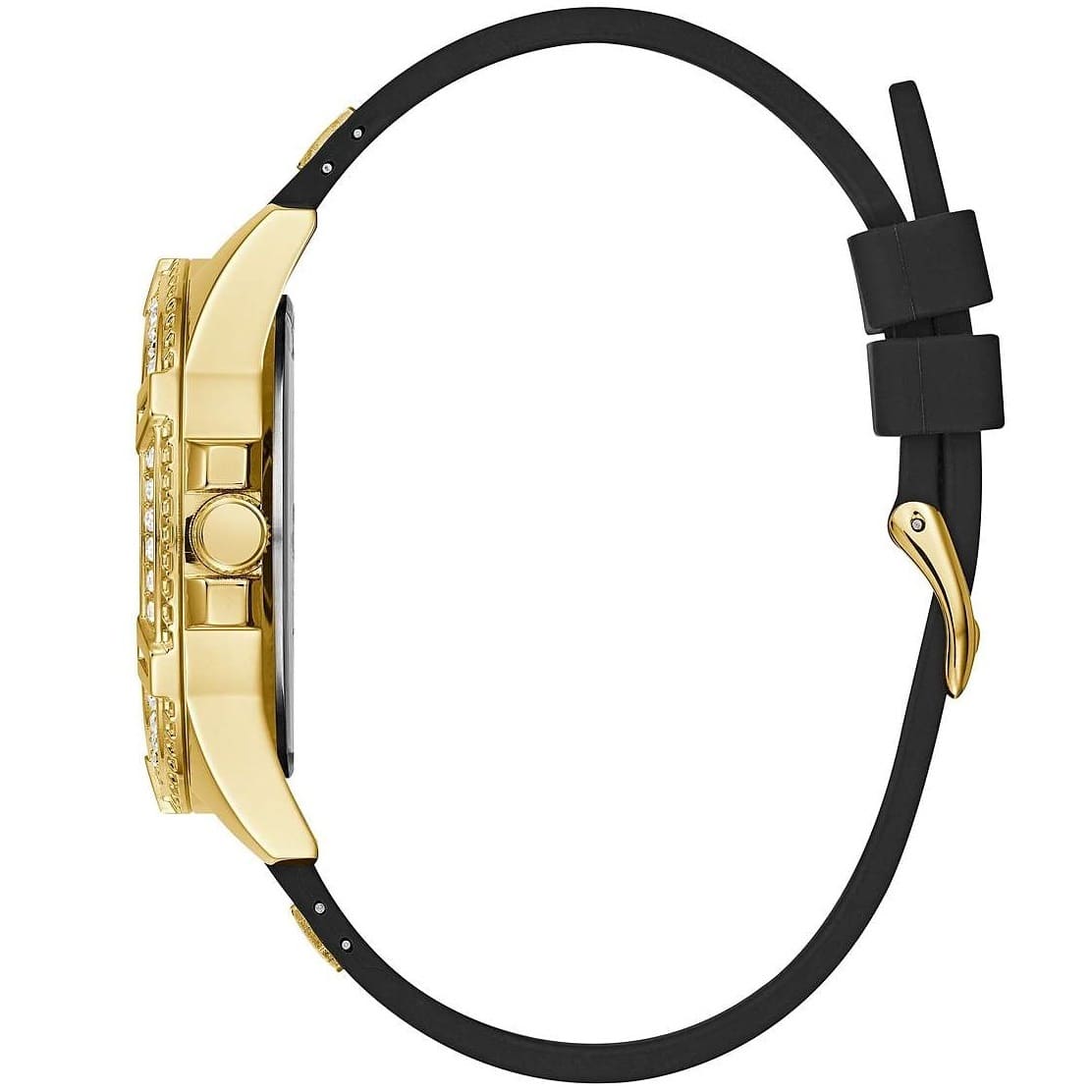 Guess Frontier Diamonds Gold Dial Black Rubber Strap Watch For Women - W1160L1