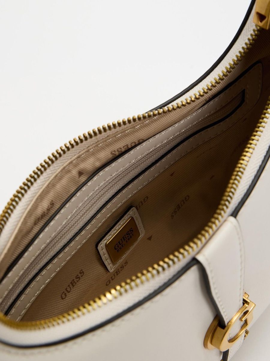 Elevate your everyday style with the chic and practical Guess Top Zip Shoulder Bag. This stylish bag features the iconic Guess logo and a modern, sleek design. The top zip closure ensures your belongings are secure, while the comfortable shoulder strap with chain detail adds a touch of elegance. Perfect for carrying your essentials in an organized fashion, this bag seamlessly blends fashion and functionality.