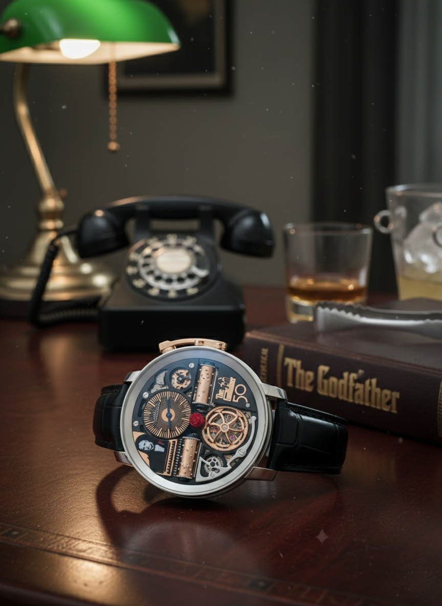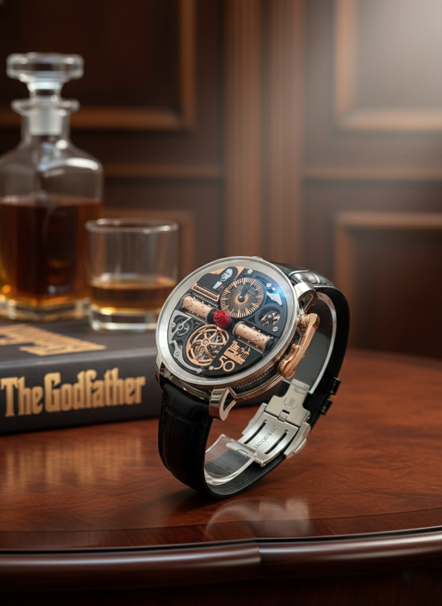 Jacob & Co. has entered into a partnership with Paramount Pictures and acquired the rights to The Godfather. Jacob & Co. has gained access to the name, imagery, narrative and music from the iconic motion picture. These have become the inspiration for the ultimate movie tribute timepiece.