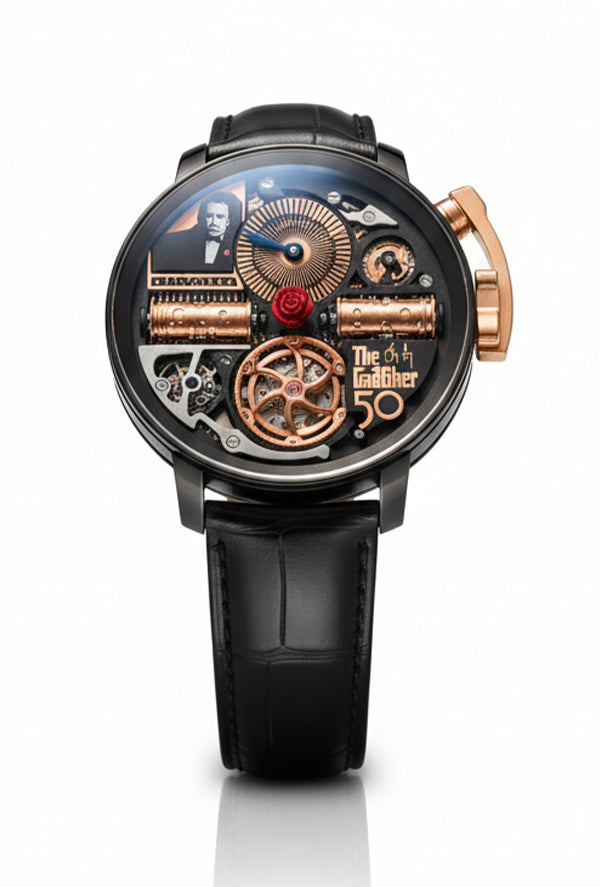 Jacob & Co. has entered into a partnership with Paramount Pictures and acquired the rights to The Godfather. Jacob & Co. has gained access to the name, imagery, narrative and music from the iconic motion picture. These have become the inspiration for the ultimate movie tribute timepiece.