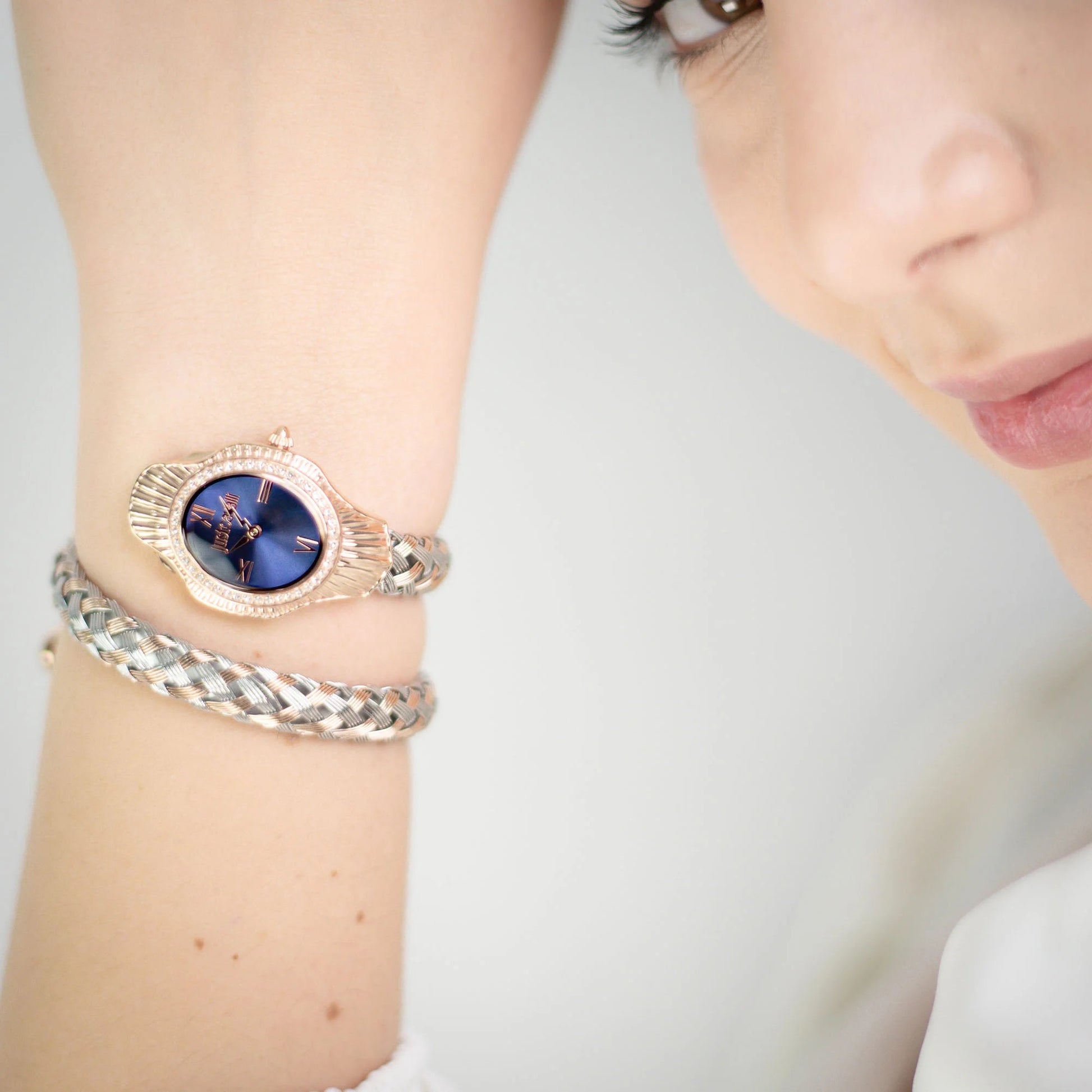 Just Cavalli Signature Snake Twined Two-Tones RG Blue Women's Watch