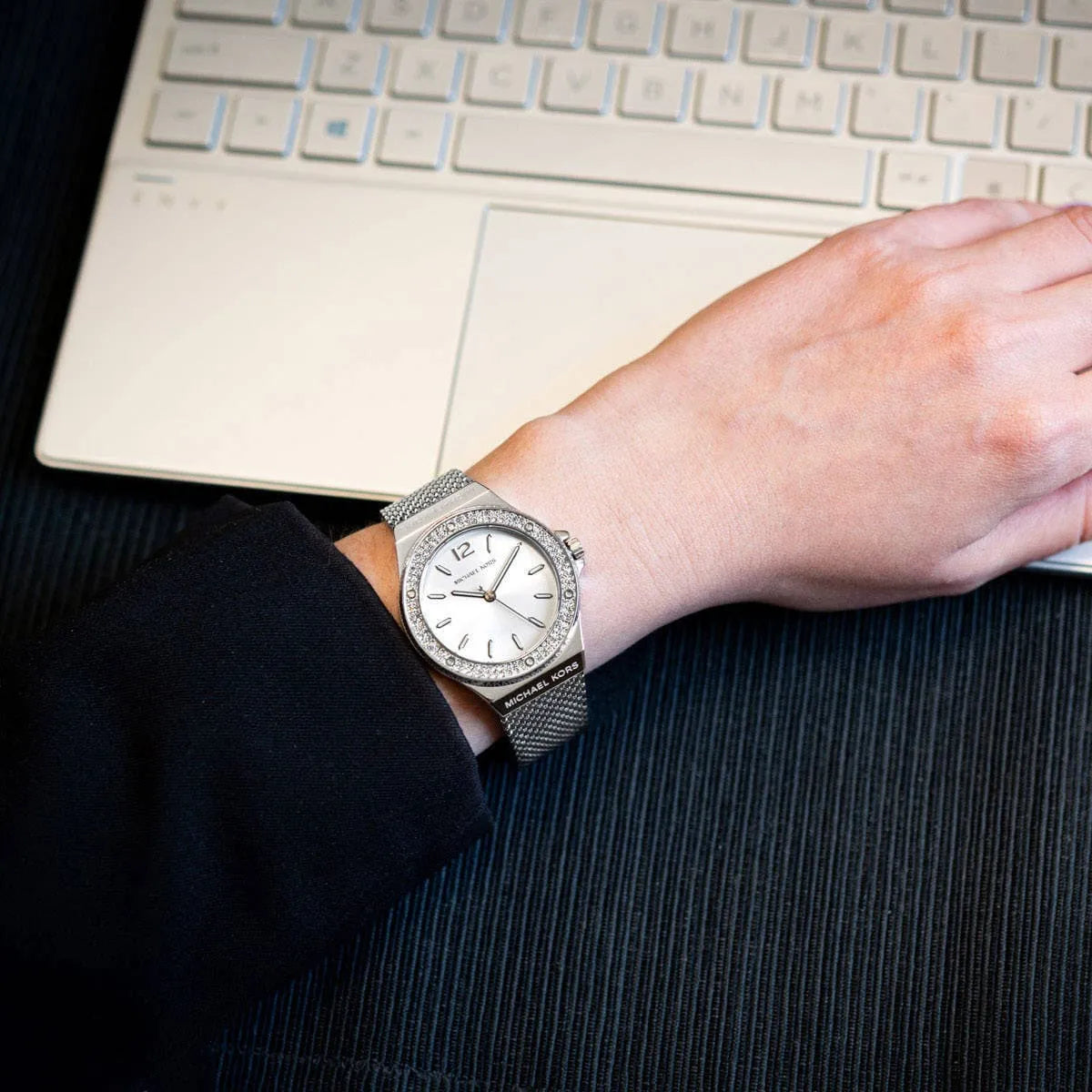 Michael Kors Lennox Three-Hand Silver Dial Silver Steel Strap Watch For Women - MK7337