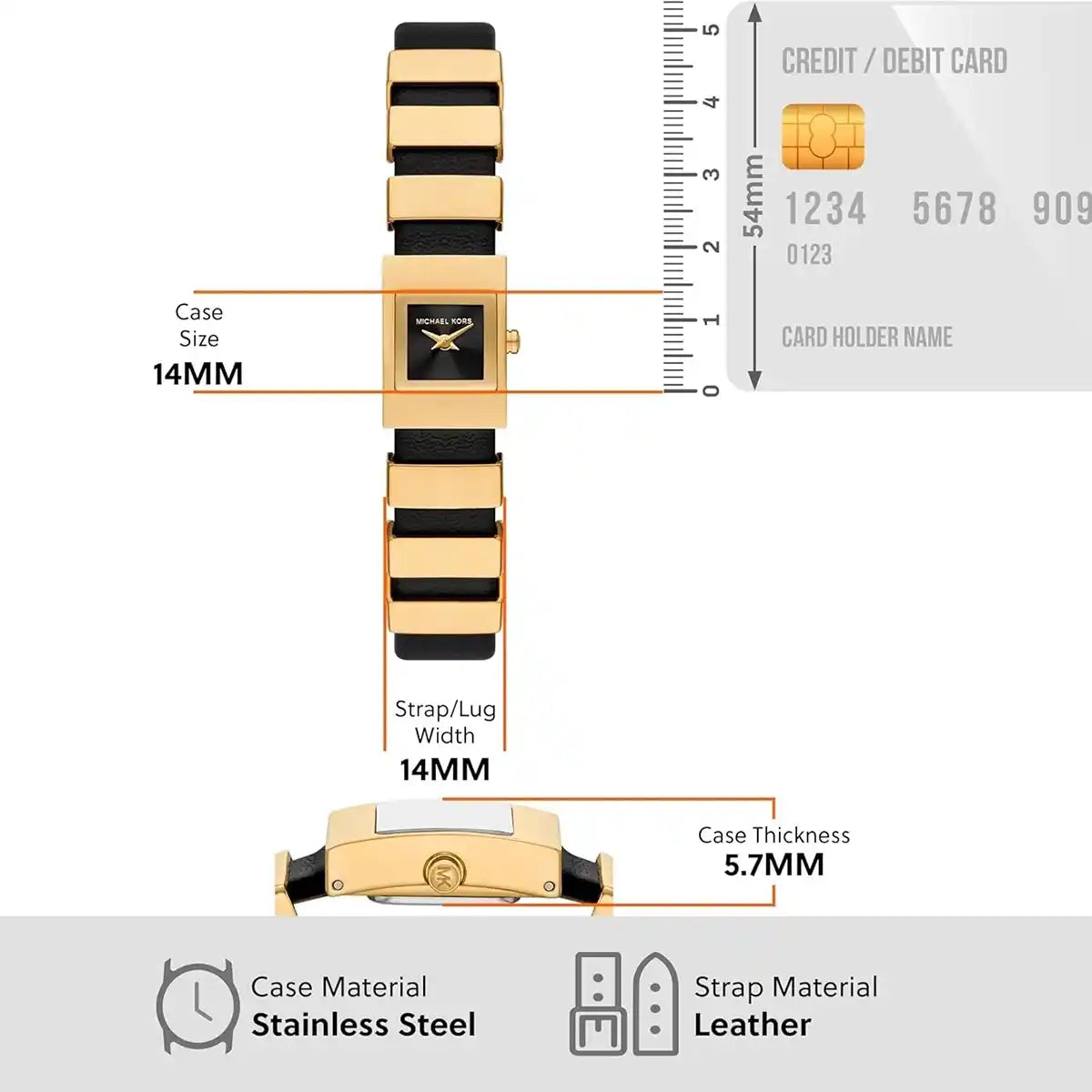| Strap | Black leather |