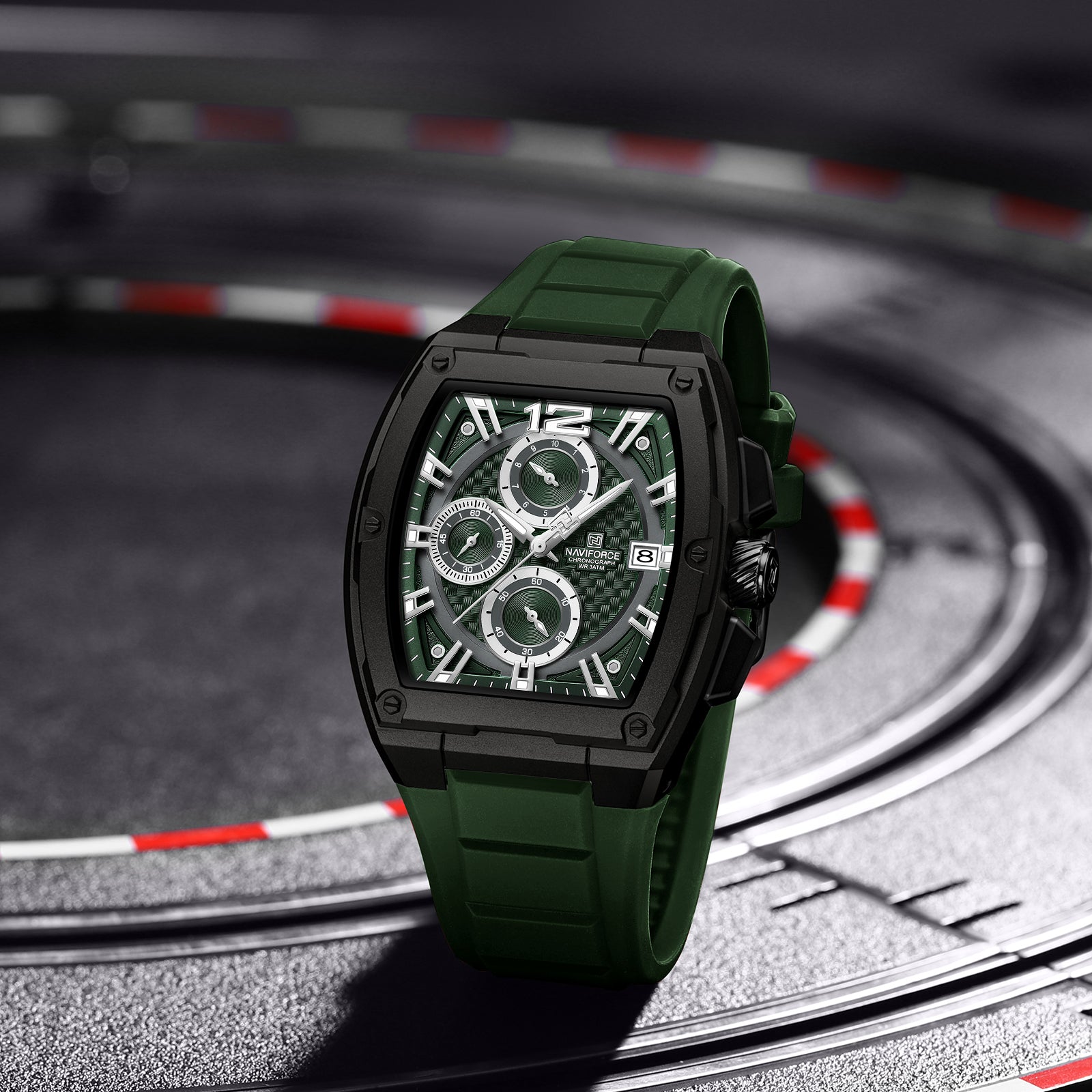 NAVIFORCE NF8050 B GN/GN Barrel-Shaped Case Waterproof Luminous Quartz Multifunction Men’s Watch