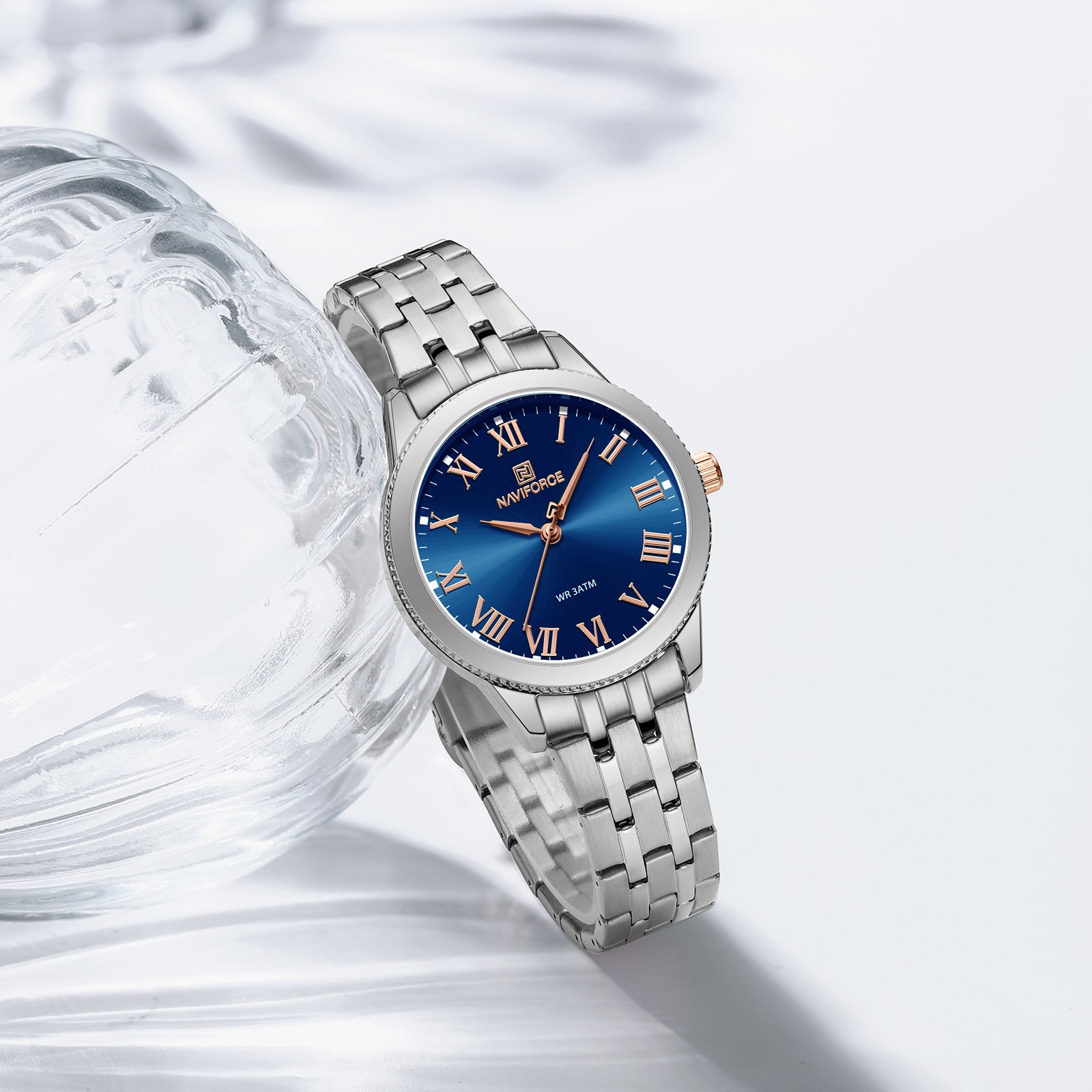 This elegant Naviforce watch for women, model NF5032, is a must-have accessory for any stylish woman. With its sleek design and reliable Japanese quartz movement.